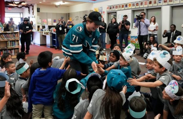 Leitura é legal: jogadores do San Jose Sharks visitam escola local e leem para crianças do primário