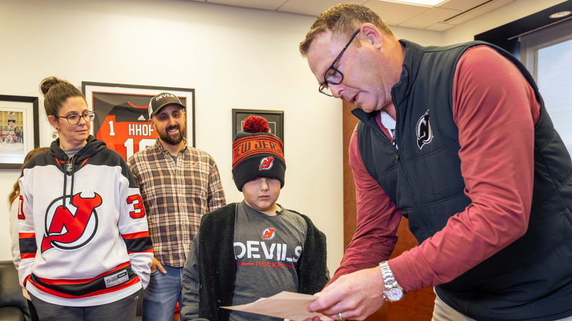 Garoto de 7 anos, que luta contra um câncer agressivo desde os três, passa o dia com o New Jersey Devils