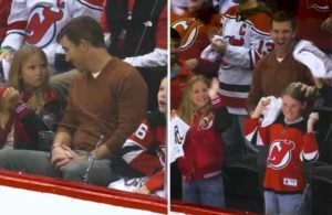 Ex-quarterback campeão da NFL tem diálogos divertidos com as filhas durante jogo do New Jersey Devils
