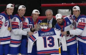 Team USA exibe camisa de jogador da NHL, morto em trágico acidente, ao receber troféu de campeão mundial