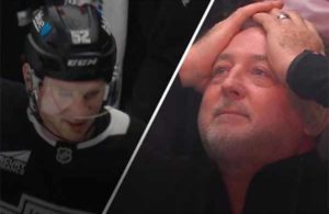 Pai de atacante novato do Los Angeles Kings tem reação emocionante ao ver primeiro gol do filho na NHL