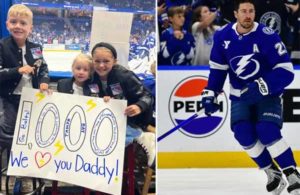 Filhos de defensor do Tampa Bay Lightning fazem cartazes para celebrar jogo 1.000 do pai na NHL