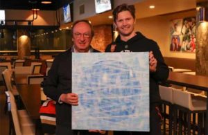 Jacob Trouba não podia deixar o lendário locutor Sam Rosen sair de mãos vazias de sua última visita a...