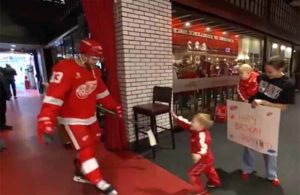 Surpresa para o papai: atacante do Detroit Red Wings ganha abraço do filho antes de jogo pelo aniversário