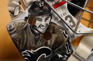 Lembrança e caridade: goleiro do Calgary Flames leva imagem de jogador morto em trágico acidente