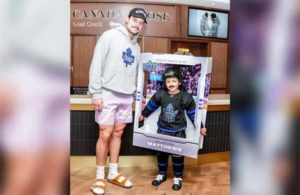 Auston Matthews conheceu o fã de 7 anos que se vestiu como um card colecionável do capitão do Toronto...