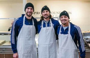 Jogadores do Toronto Maple Leafs servem refeições em visita à entidade que ajuda jovens sem-teto ou em risco