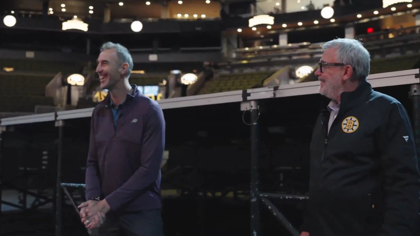 Neely levou Chara ao TD Garden sob o pretexto de precisar dele para uma sessão de fotos, mas assim que entraram na arena principal, Neely mudou de ideia.